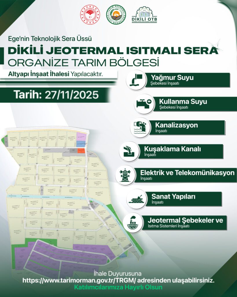Sözleşme Başlığı: Dikili Tarıma Dayalı İhtisas Sera Organize Sanayi Bölgesi Kapsamında Altyapı (Atık Su, Yağmur Suyu, Kullanma Suyu, Elektrik ve Telekomünikasyon, Kuşaklama